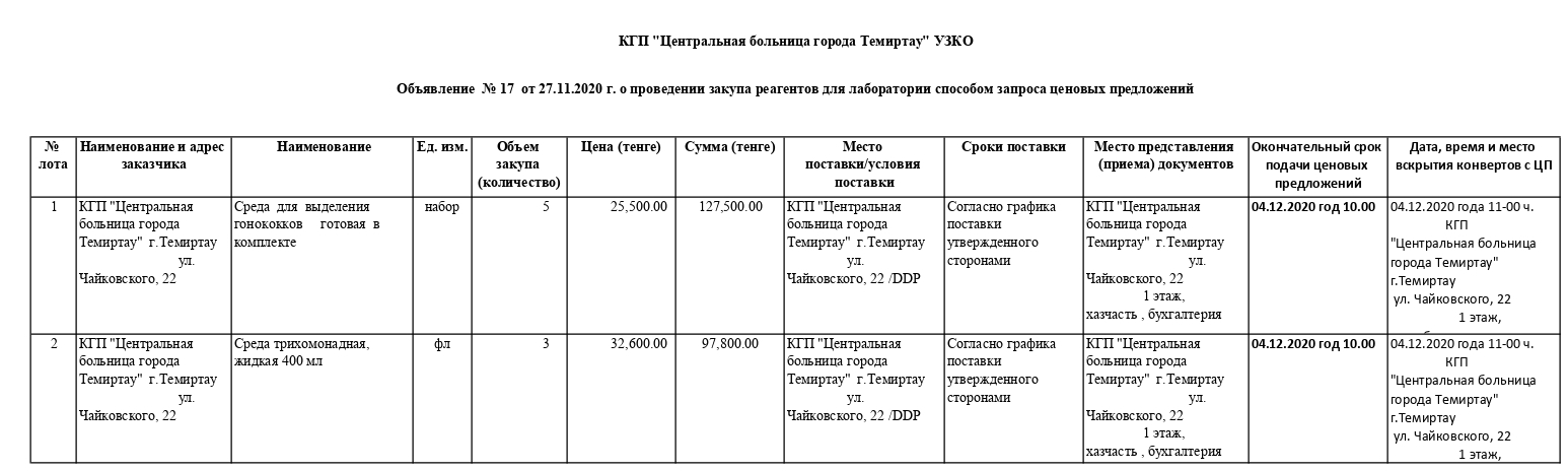 17. Объявление о закупе ЛС и МИ №17 (27 ноября 2020 года)