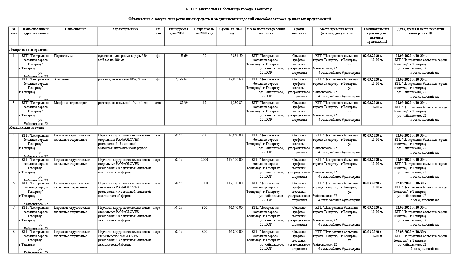 Объявления на госзакупки