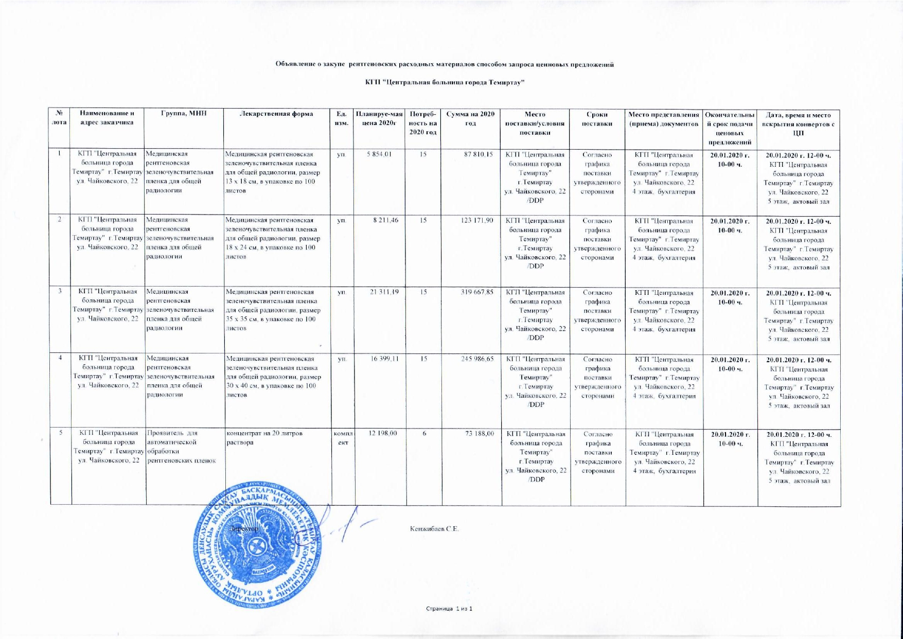Список телефонов отделений КГП на ПХВ « Многопрофильная больница г.Темиртау» УЗКО