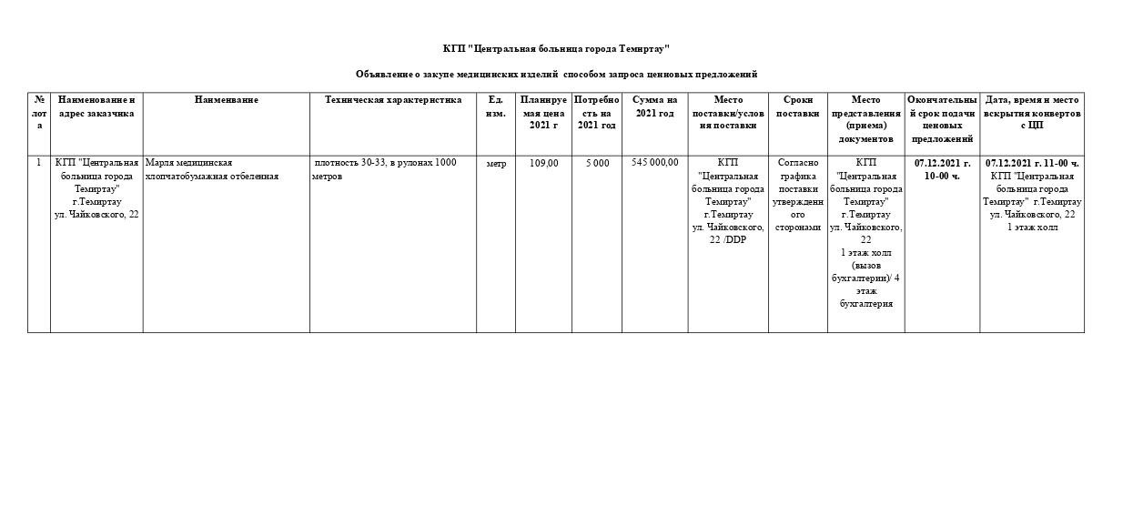 24. Объявление по закупу медицинских изделий способом запроса ценовых предложений. (30 ноября 2021 года)