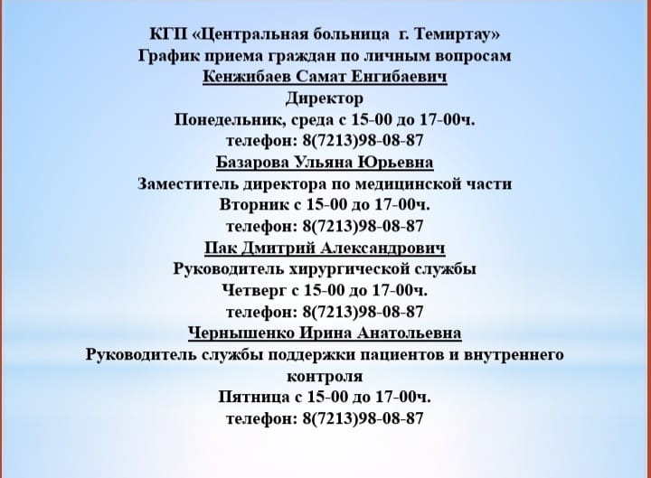 Список телефонов отделений КГП на ПХВ « Многопрофильная больница г.Темиртау» УЗКО