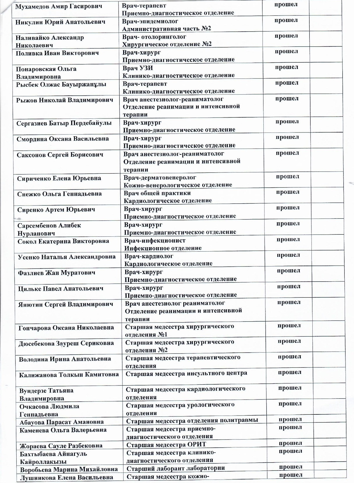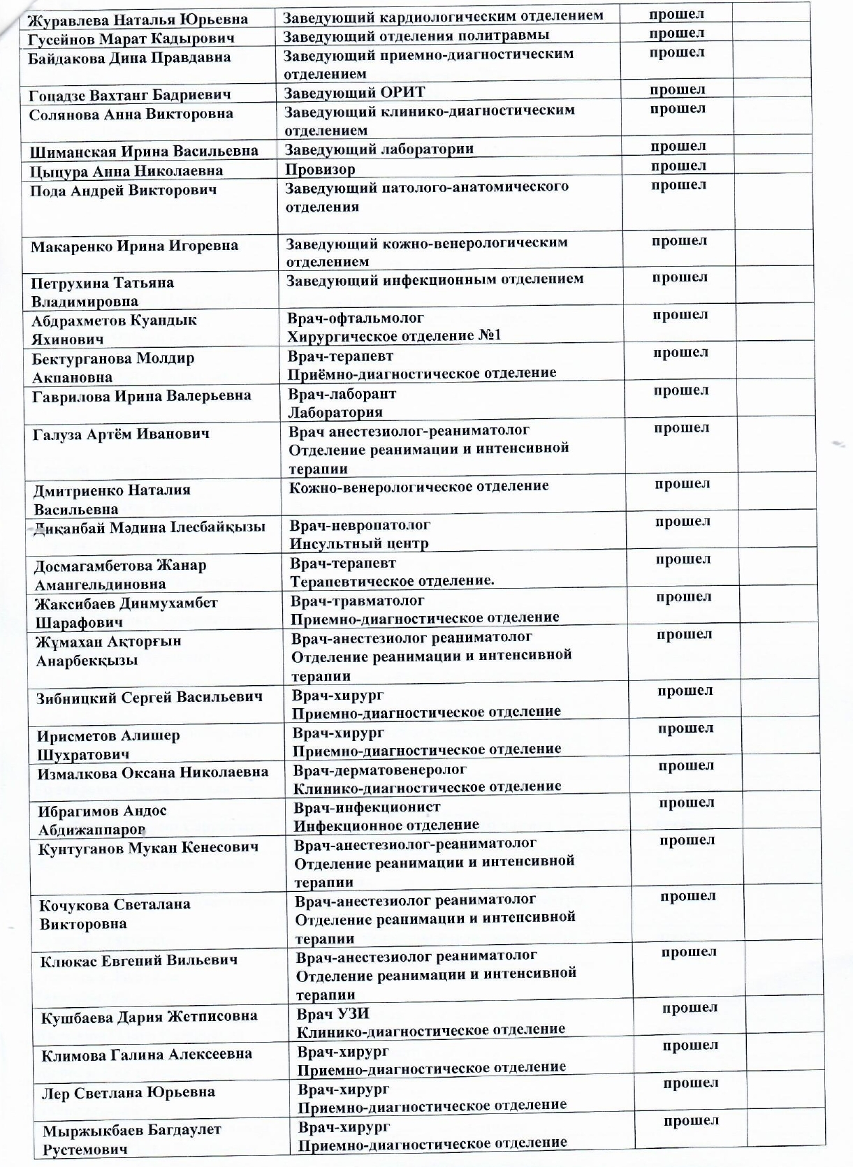 Список телефонов отделений КГП на ПХВ « Многопрофильная больница г.Темиртау» УЗКО