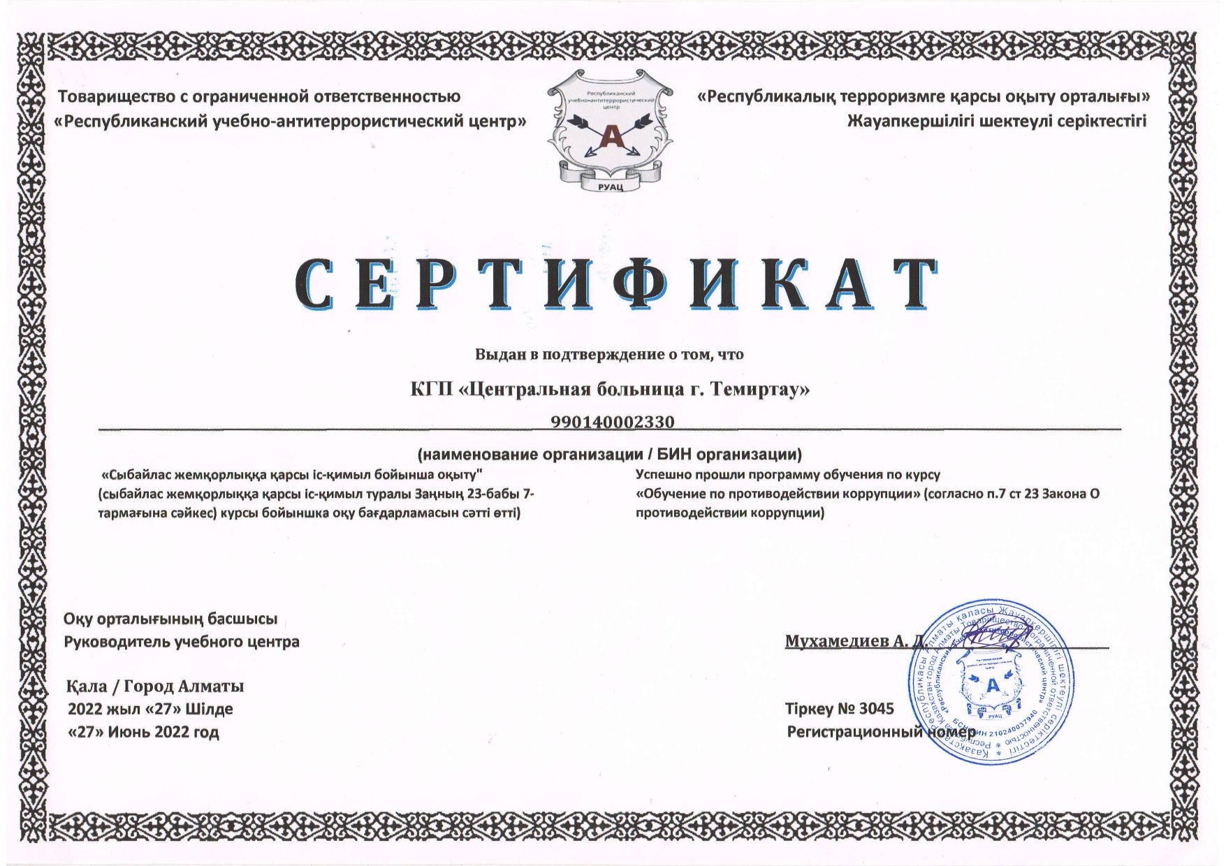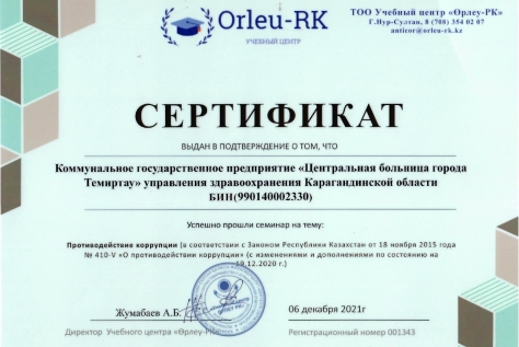 6) Ответственный за соблюдение норм Антикоррупционного законодательства КГП "Центральная больница г. Темиртау" Уали 980887» (Скачать ZIP 10 Mb) Протокола (Скачать ZIP 16 Mb)