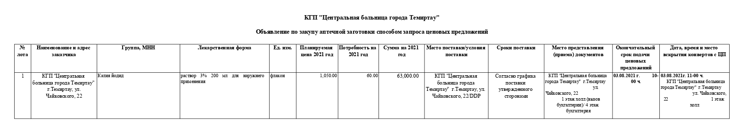 16. Объявление о закупе расходных материалов и реактивов для лаборатории способом запроса ценовых предложений. (26 июля 2021 года)