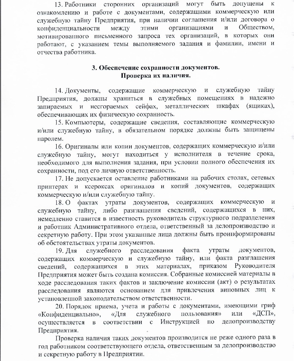 Инструкция по обеспечению сохранности коммерческой и служебной тайны
